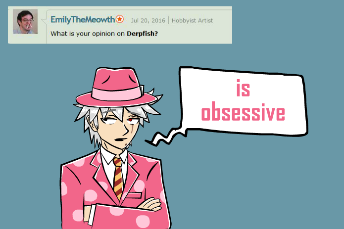 Today’s question is from https://emilythemeowth.deviantart.com: “What is your opinion on Derpfish?”( A.K.A.https://galaxianista.deviantart.com/:icongalaxianista:)THIS IS THE OFFICIAL ANSWER