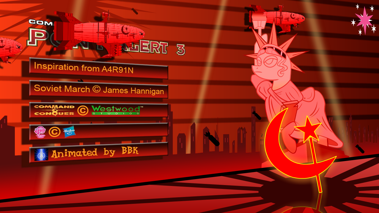 And now it’s time for me to create the sequel, Pony Alert 3 (Although Red Alert 3 wasn’t that great compare to Red Alert 2 & Yuri’s Revenge), yeap, when I saw the bears & Trixie Kirovs in that Twilight Effect comic, I can’t help but to make this animation. Think of the Red Alert casts in the pony universe as in the Soviet perspective :